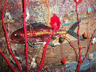 I shall return soon with more artwork to show. I have a boatload of ATCs that you all haven't seen. I need to go to bed right now though. I've been awake for 22 hours and sleep is calling! Couldn't go to bed though till that fish picture was done.